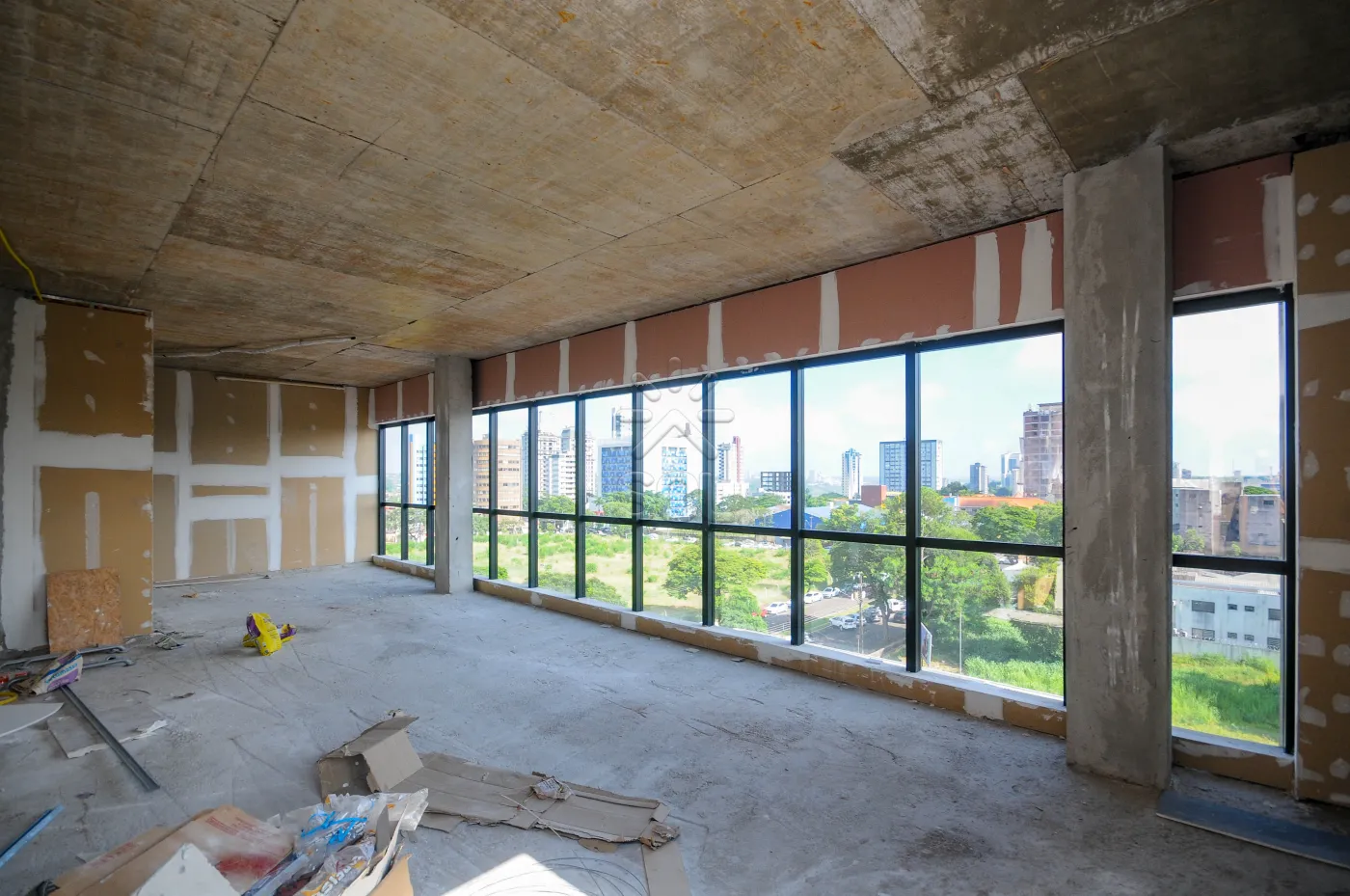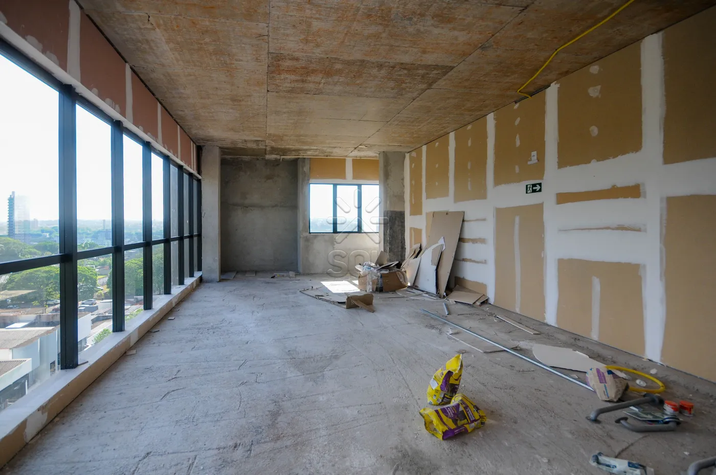 OBSERVAÇÃO: As salas comerciais encontram-se atualmente em fase de acabamento. Os proprietários optaram por mantê-las neste estágio neste momento, a fim de definir posteriormente qual será o segmento/atividade a ser instalado no local.