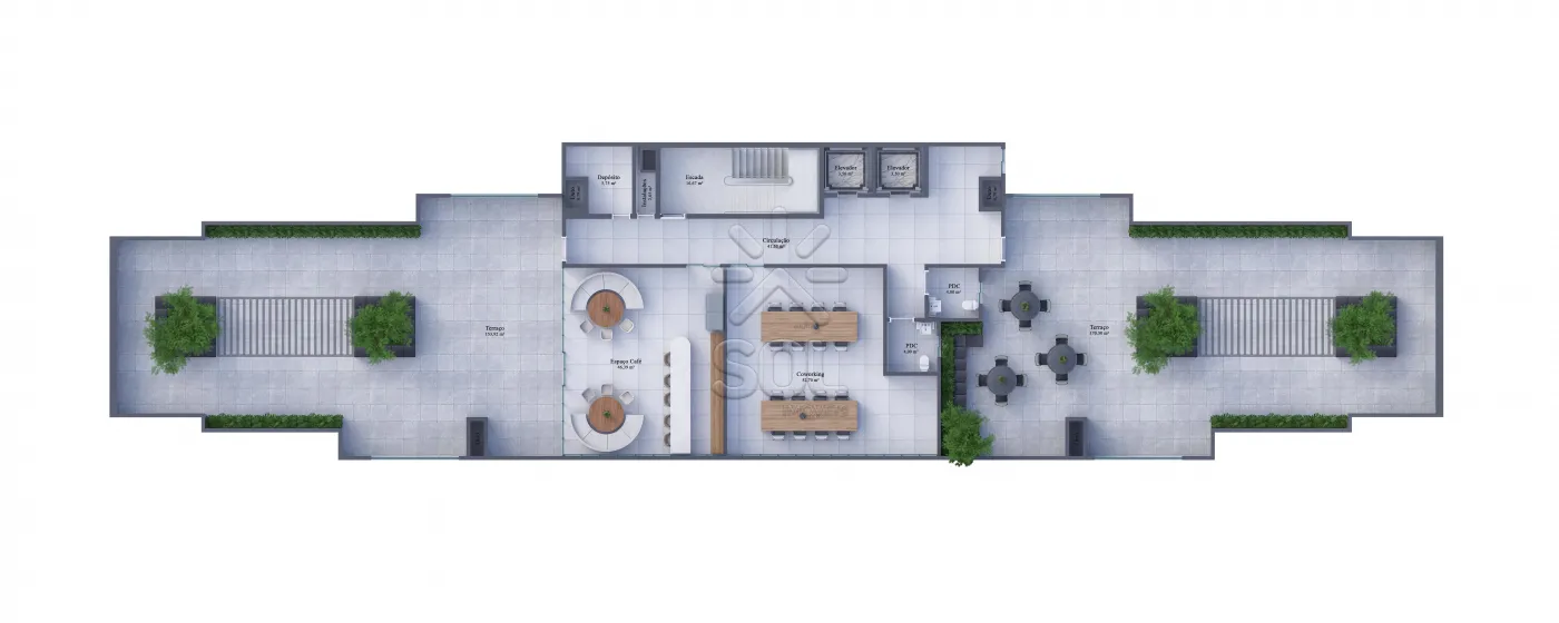 - Trabalho e conveniência: Coworking, espaço café e um local para mini-mercado.