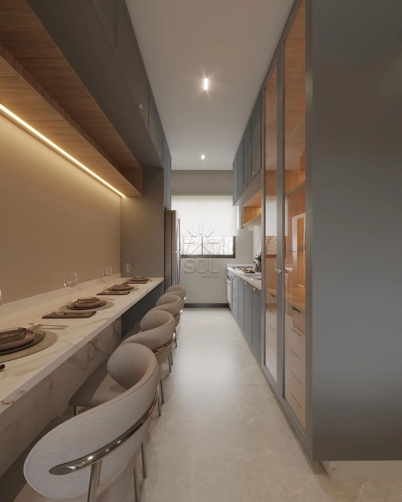 - 1 Quarto (sala, cozinha e banheiro social): 47,40m².