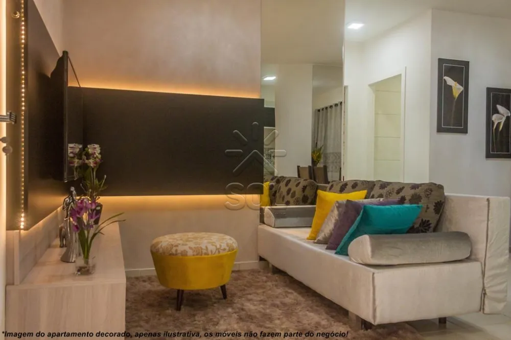 Apartamentos novos à venda no Residencial Joy, compostos por 2 quartos, sala para 2 ambientes, sacada com churrasqueira, banheiro social, cozinha, área de serviço e 1 vaga de garagem descoberta.