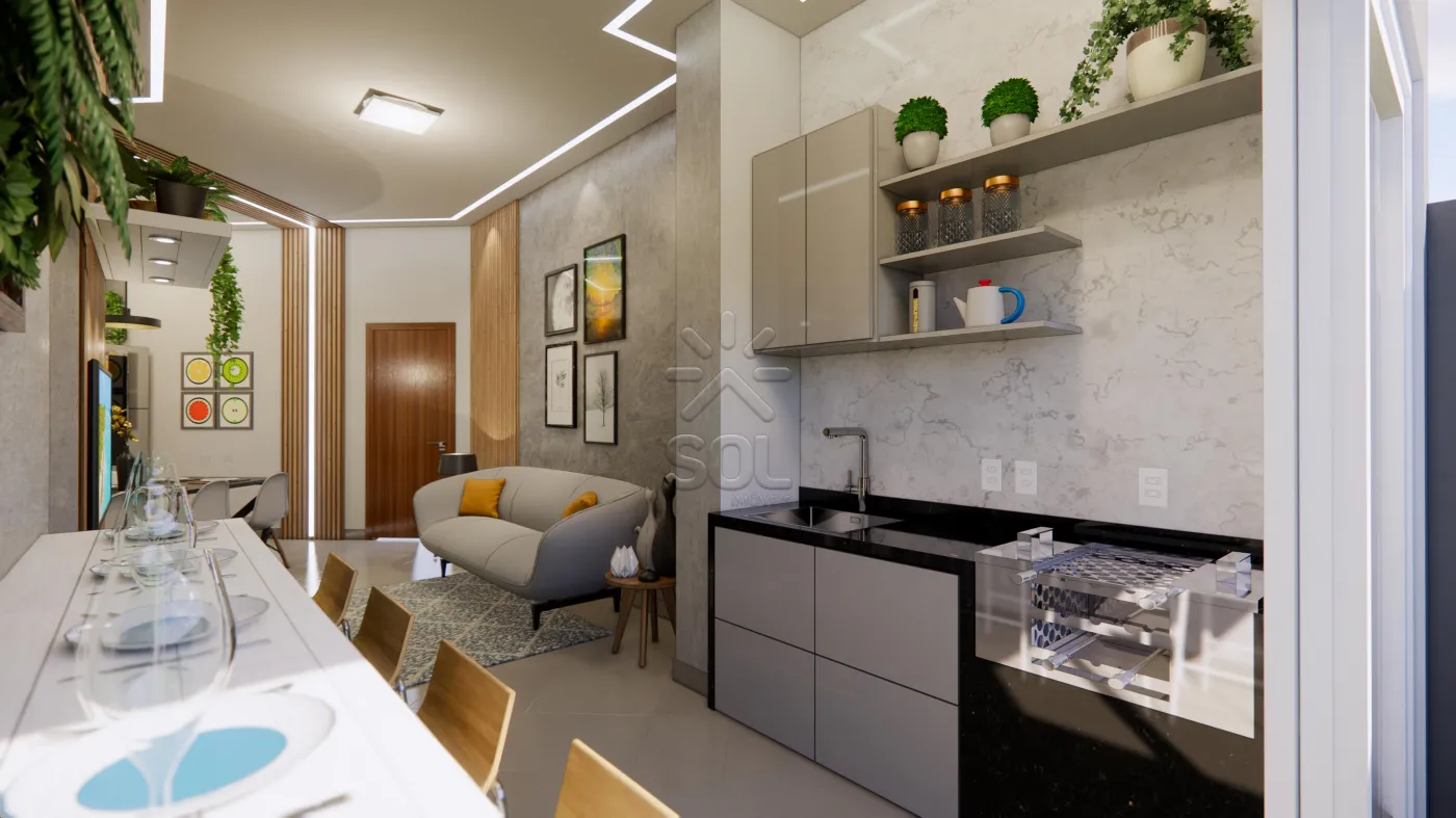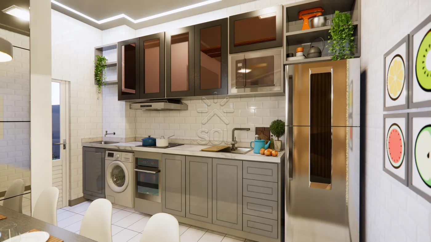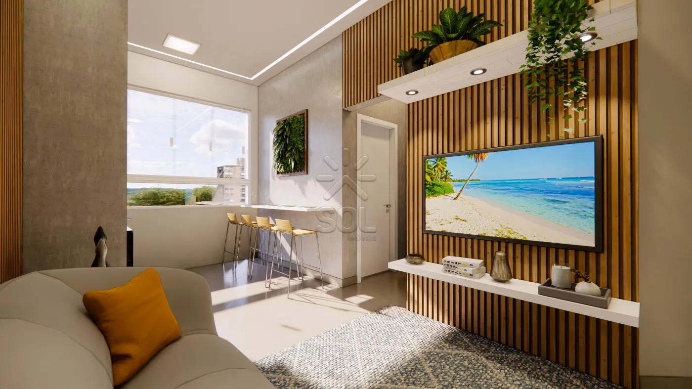 2 dormitórios (sendo uma suíte), varanda fechada e integrada ao living com grill, banheiro social e 1 vaga de garagem.