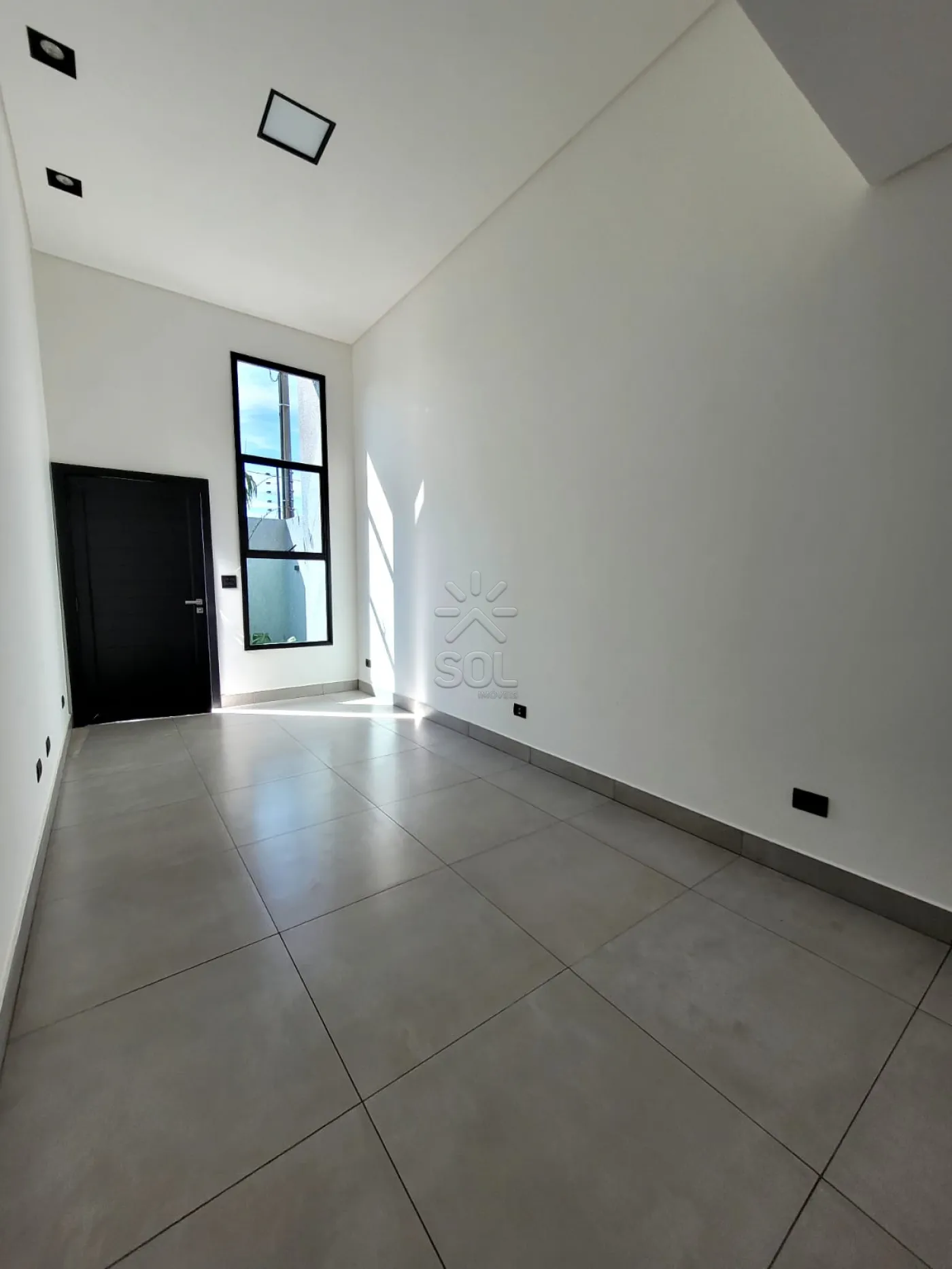 - Sala com pé direito alto e porta pivotante;