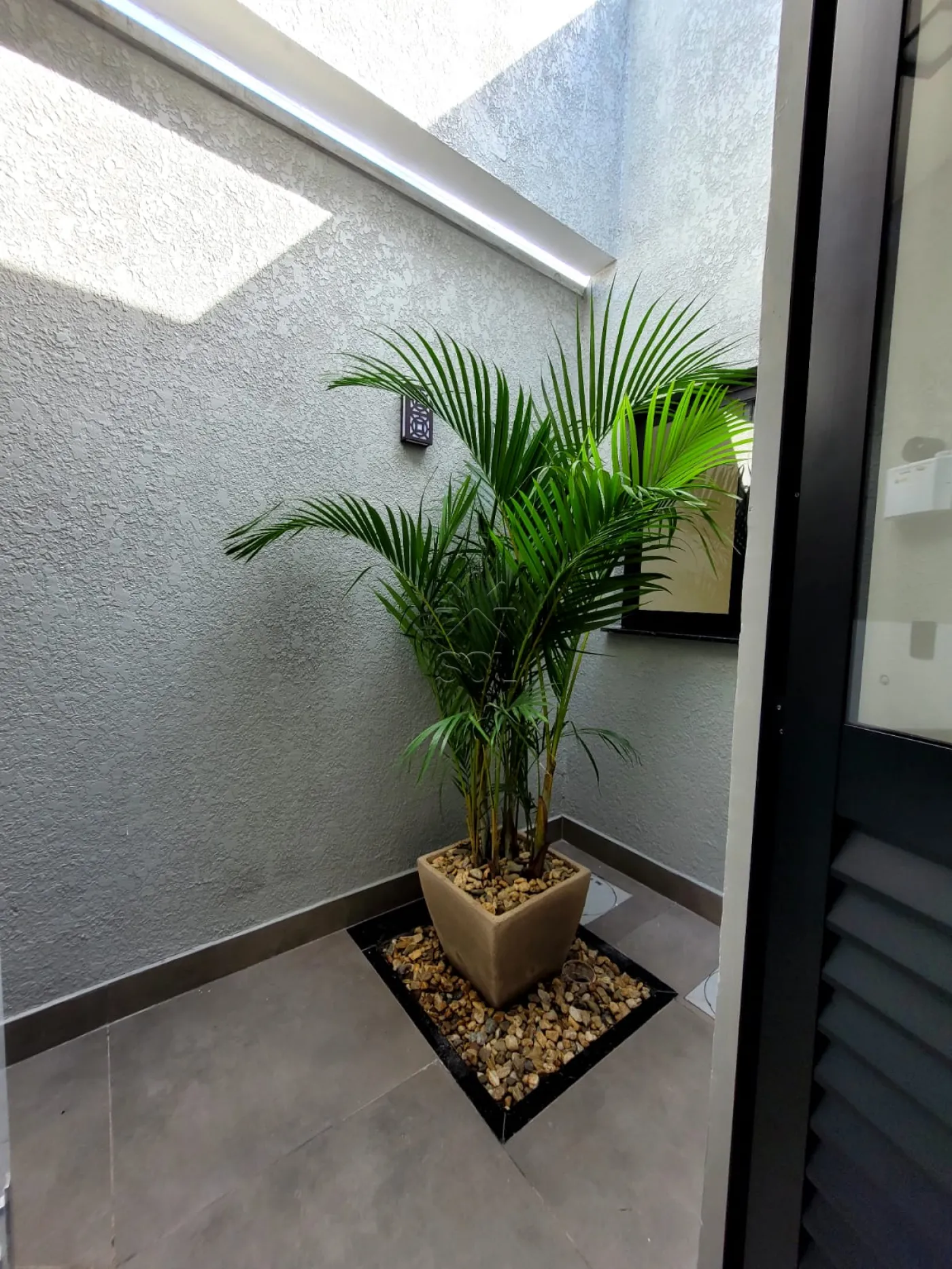 Acabamentos: jardim, gesso no teto, piso porcelanato, laje e iluminação em led.