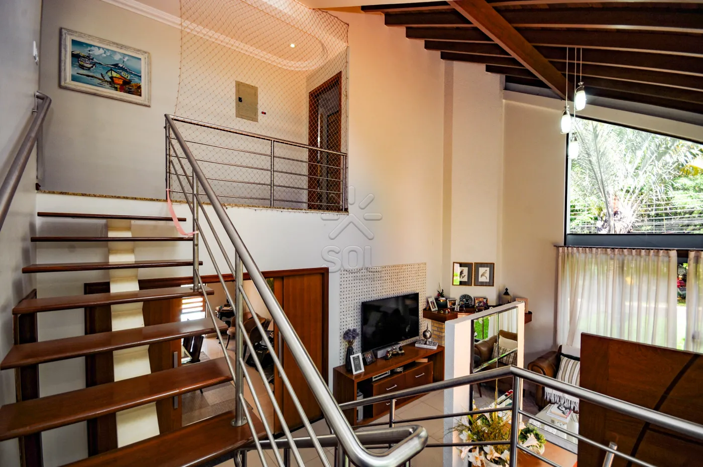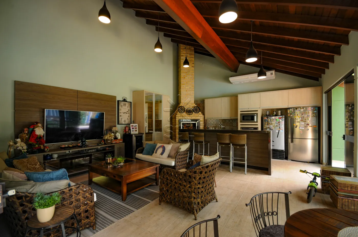 - Sala de estar com pé direito duplo;