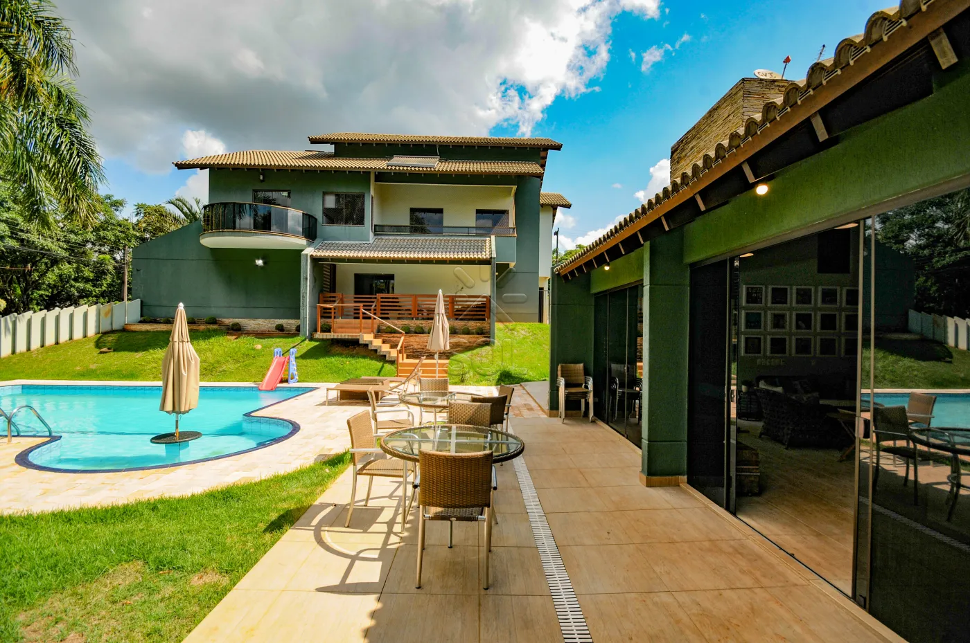 - Ampla área de lazer com piscina, área gourmet climatizada, suíte para hóspedes e depósito.