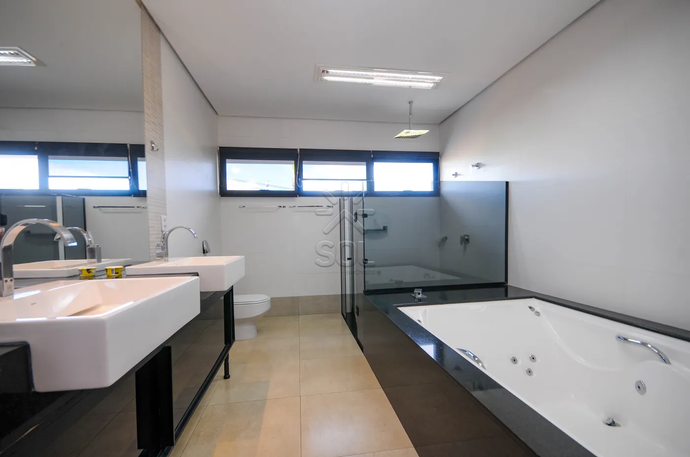 - 5 quartos, sendo 3 suítes, 1 delas master com banheira de hidromassagem;
