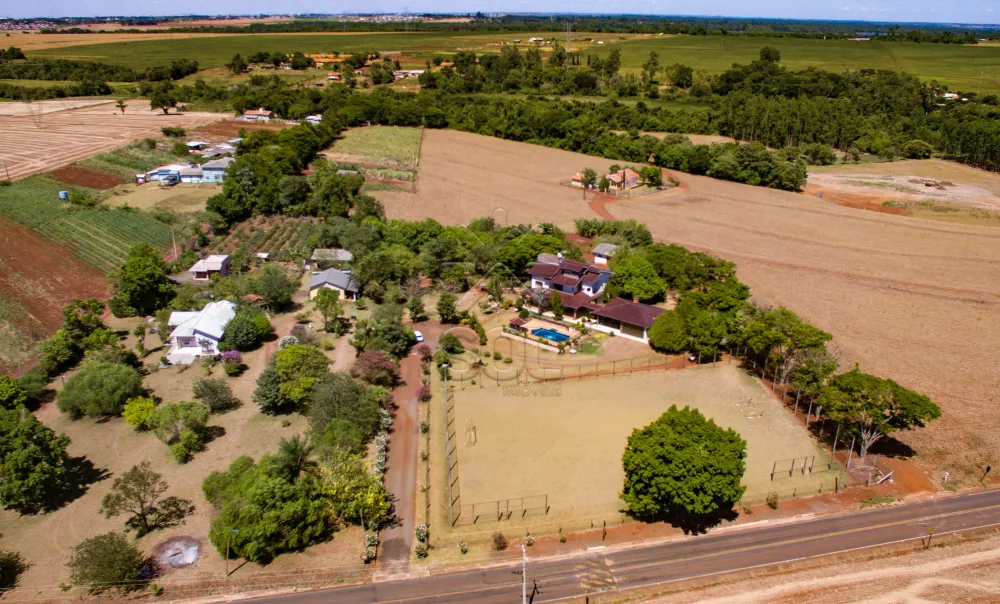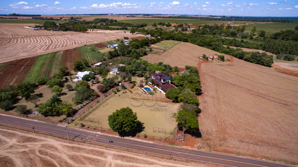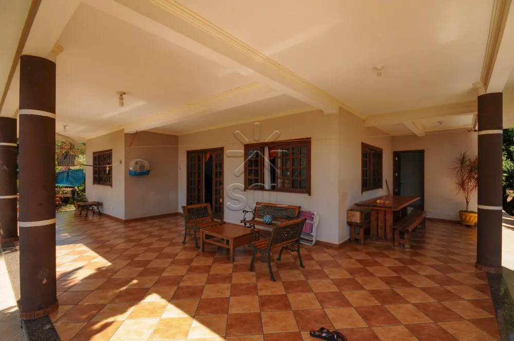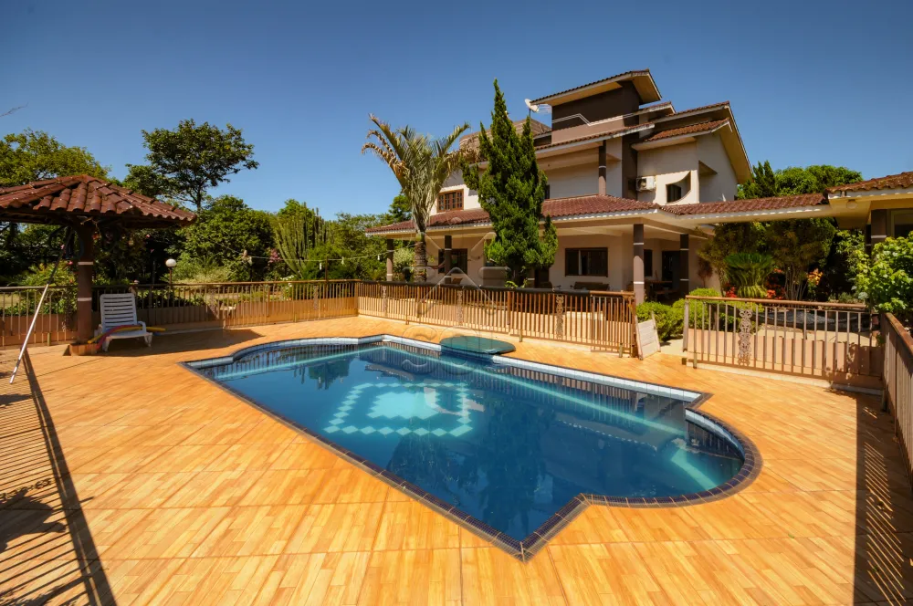 - Com amplo sobrado, composto por 3 quartos (sendo 1 suíte com closet e sacada), sala para 3 ambientes, lavabo, banheiro social, escritório, sacada, cozinha, lavanderia, dependência de empregada, banheiro e varanda, edícula com 1 quarto e banheiro, piscina, campo de futebol e pomar.