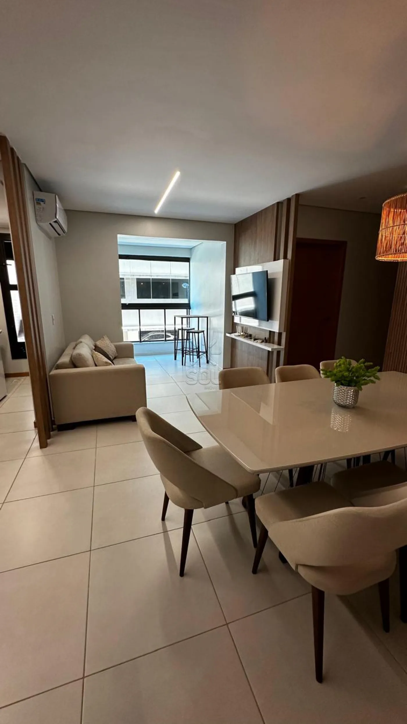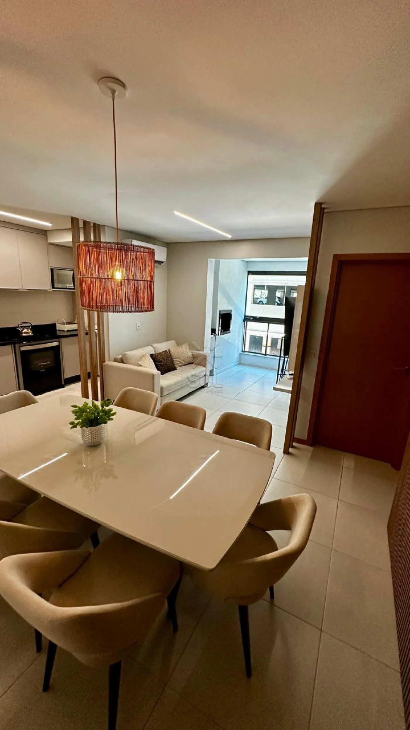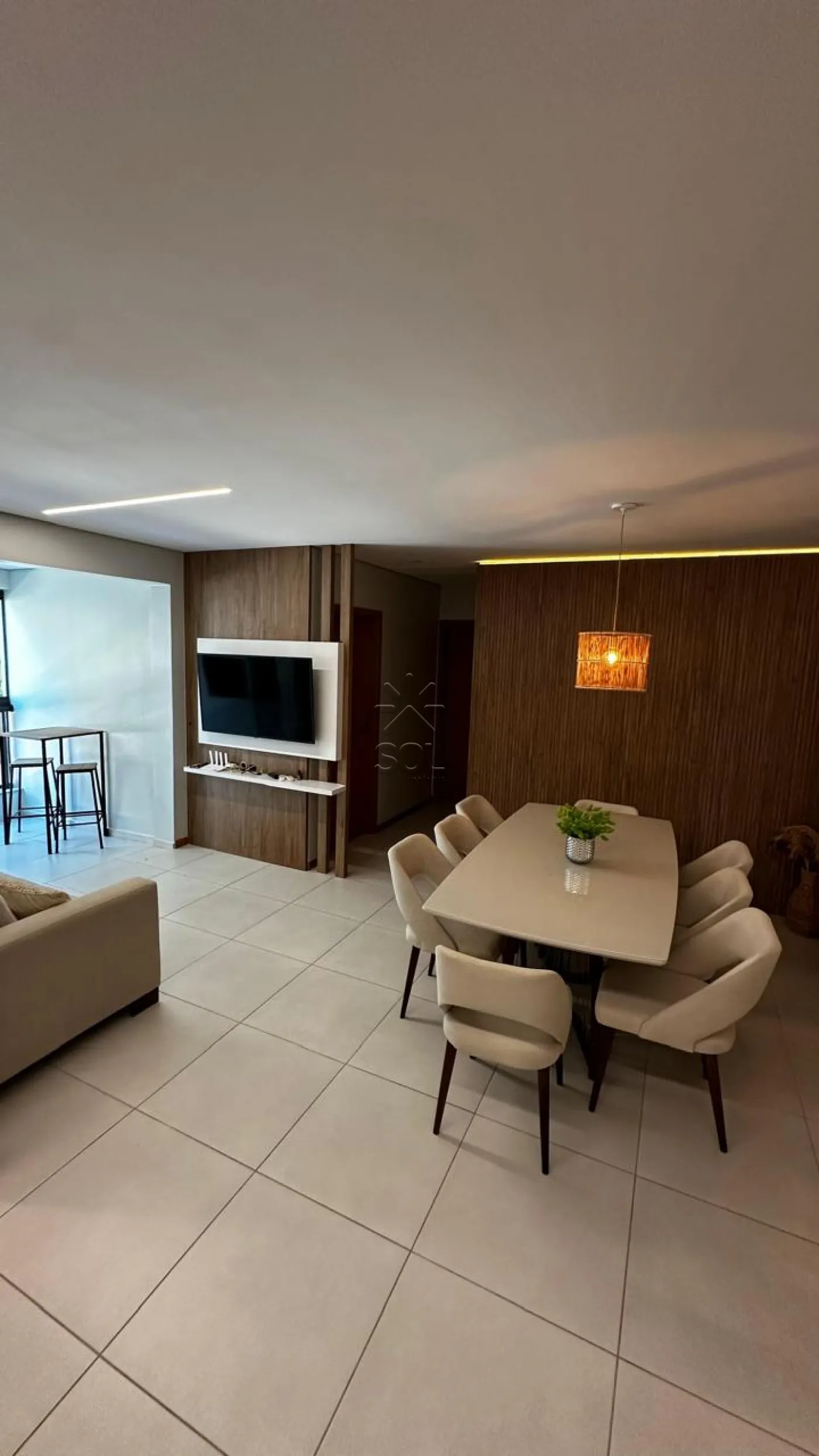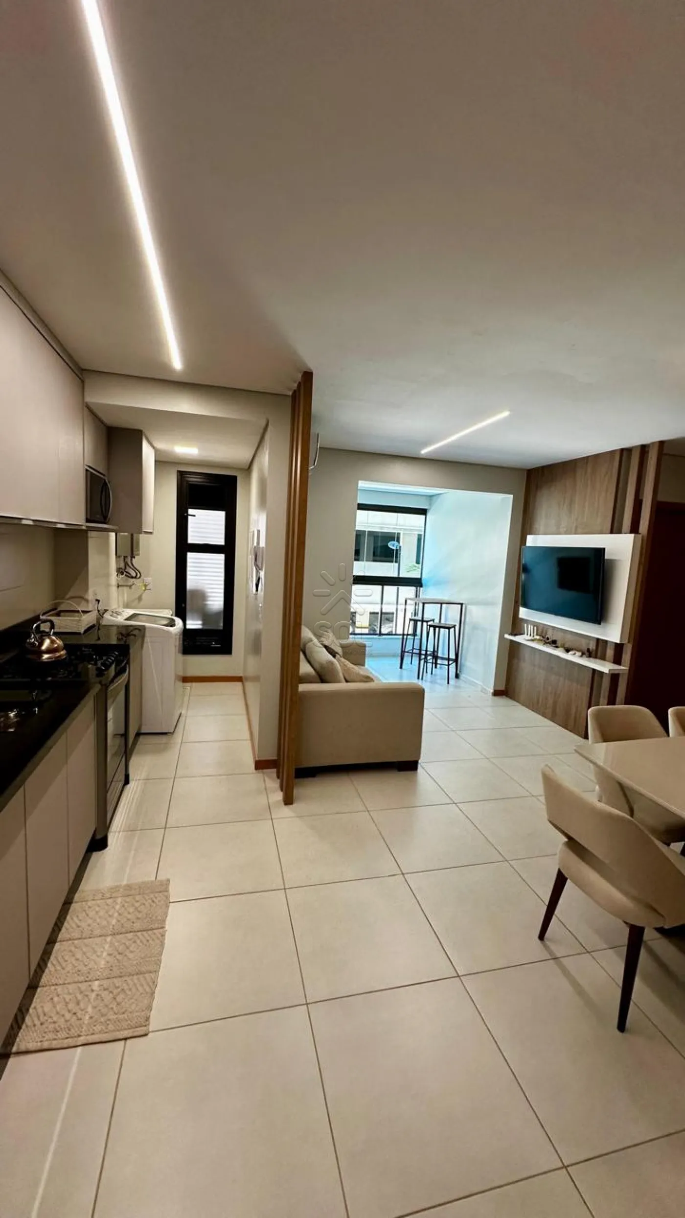 - Sala de estar, jantar e cozinha integradas;