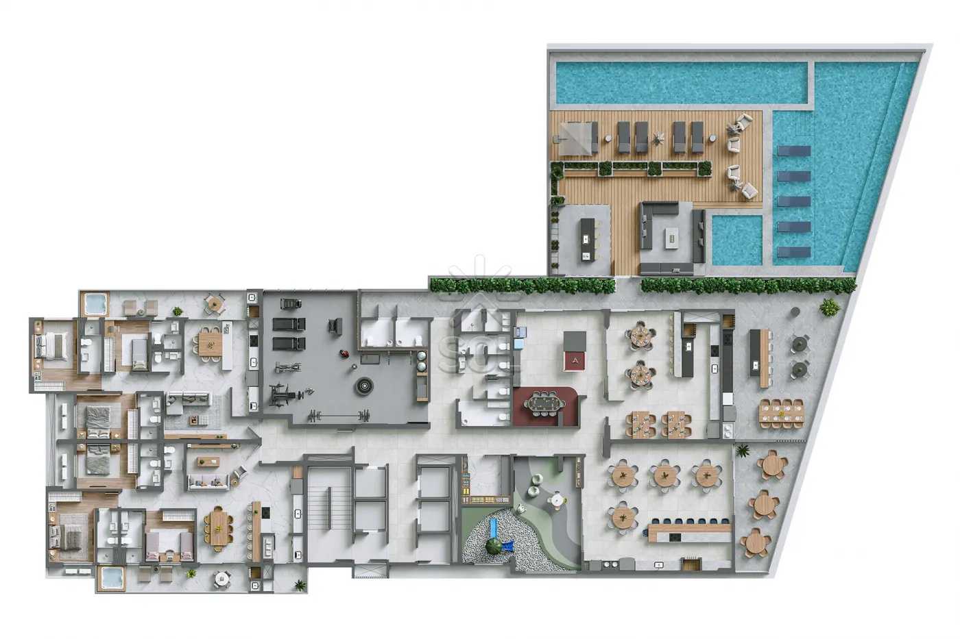 Área de lazer completa com 854m²: